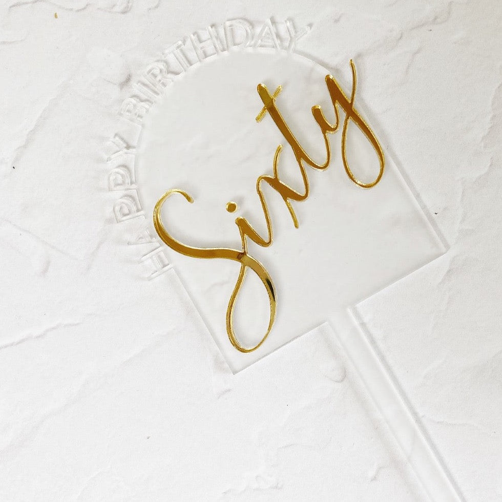 These stunning cake toppers will add the perfect finishing touch to your cakes. Made with frosted a frosted acrylic arch with 'Happy Birthday' design and a gorgeous script age!