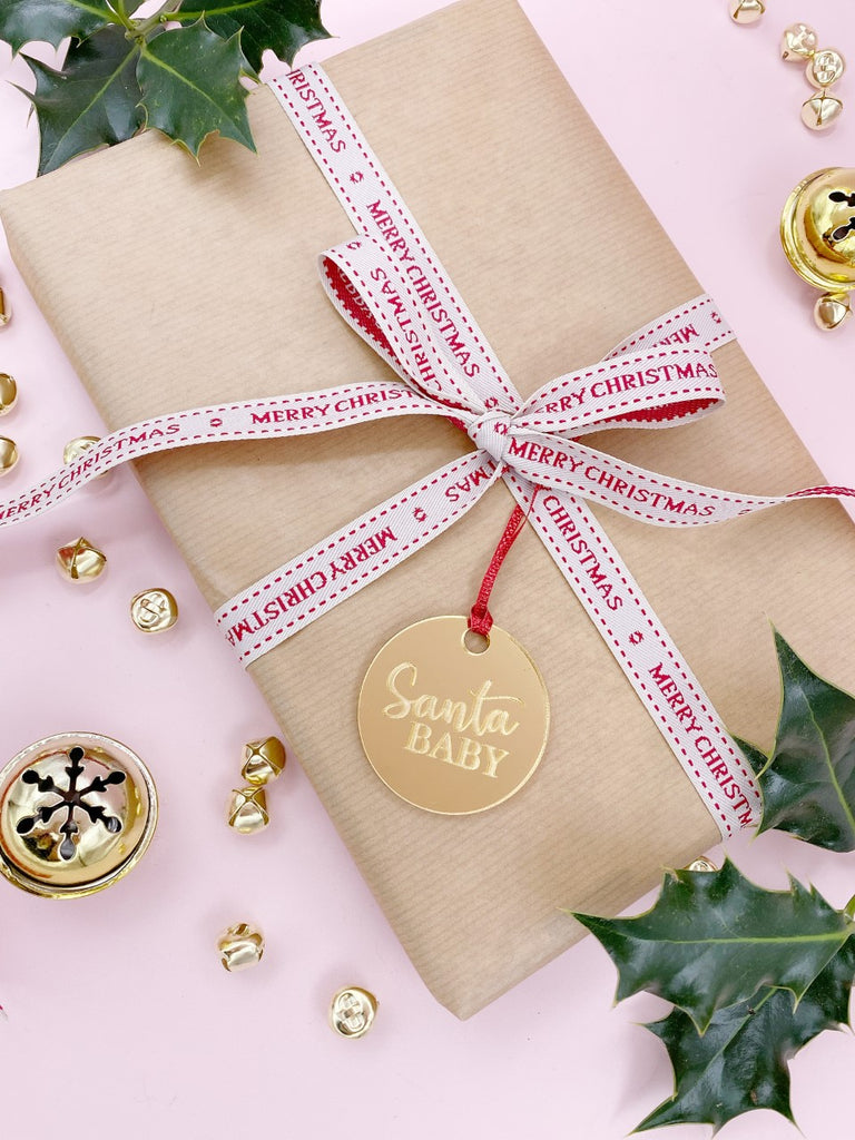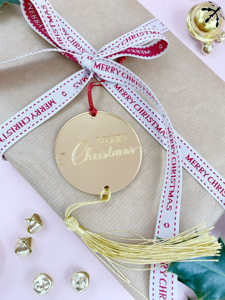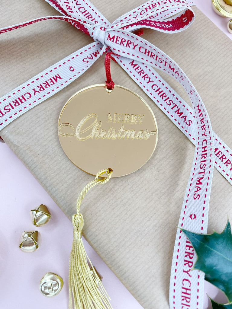 Black Ribbon with a Silver Merry Christmas Pattern - 10mm
