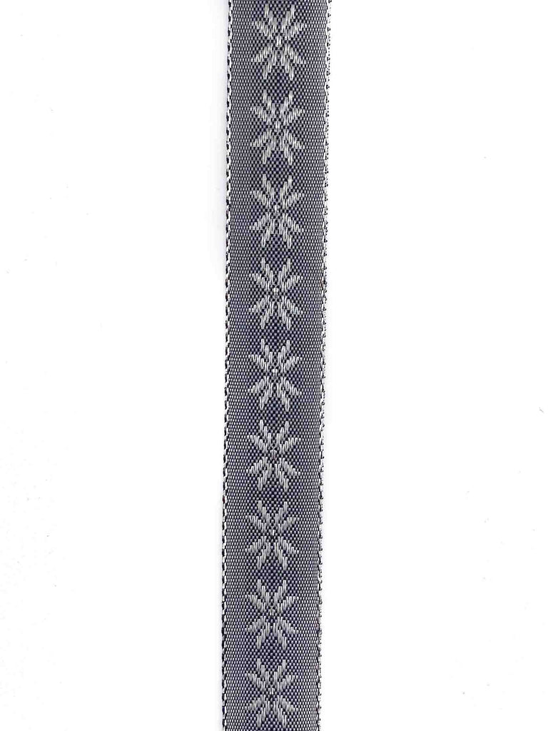 Gunmetal Grey Winter Flower Jacquard Ribbon - 15mm