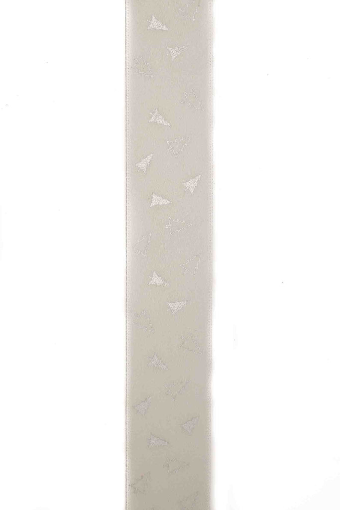 White Ribbon with a Scattered Silver Christmas Tree Design - 25mm