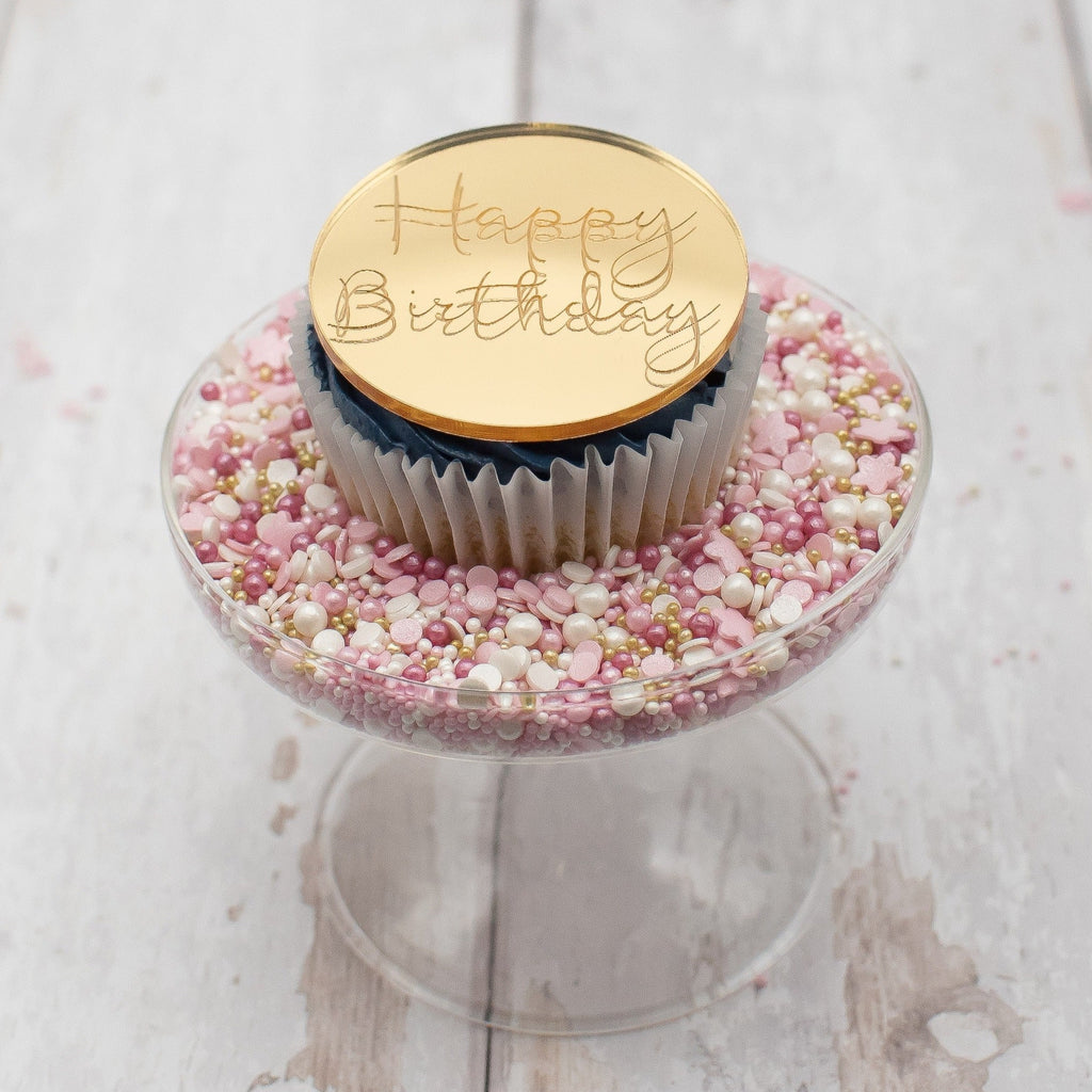 Happy Birthday Acrylic Cupcake Topper - 6 Pack