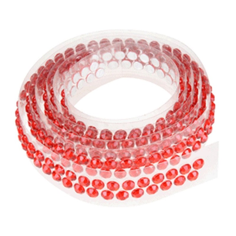 Adhesive decorative ribbon with red rhinestones to elegantly decorate cakes made with fondant.