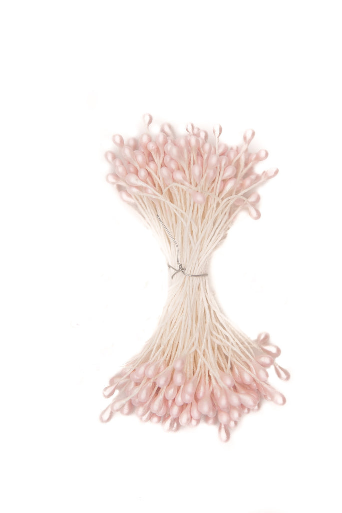 Small Pearlised Pink - Rounded Head Stamens with Pink Wire