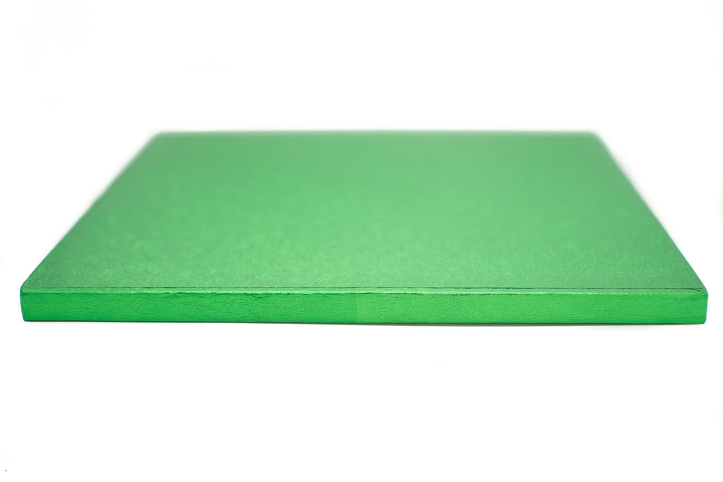 Cake Drums are the strongest type of Cake Board. It has a bonded fibre board inner which is covered on the top and sides with a fern textured, silver coloured foil and with white paper on the base. The finished Cake Board is 0.5'' (13mm) thick.