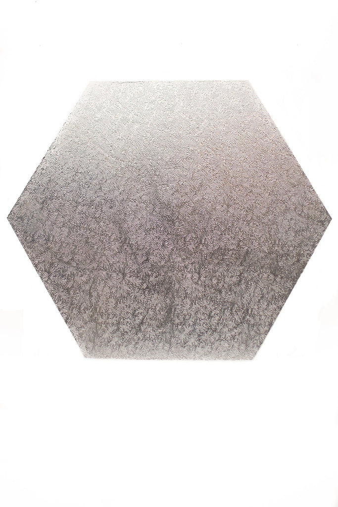 Cake Drums are the strongest type of Cake Board. It has a bonded fibre board inner which is covered on the top and sides with a fern textured, silver coloured foil and with white paper on the base. The finished Cake Board is 0.5'' (13mm) thick.