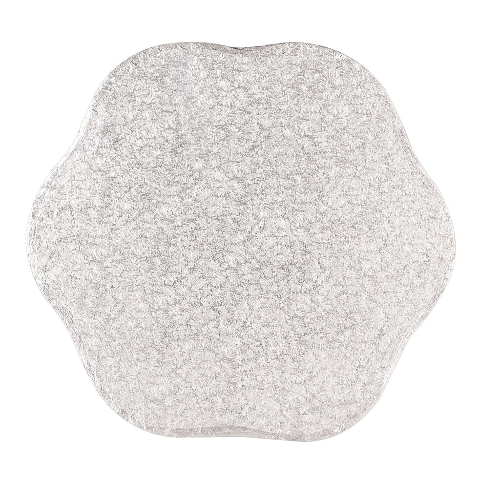 Cake Drums are the strongest type of Cake Board. It has a bonded fibre board inner which is covered on the top and sides with a fern textured, silver coloured foil and with white paper on the base. The finished Cake Board is 0.5'' (13mm) thick.