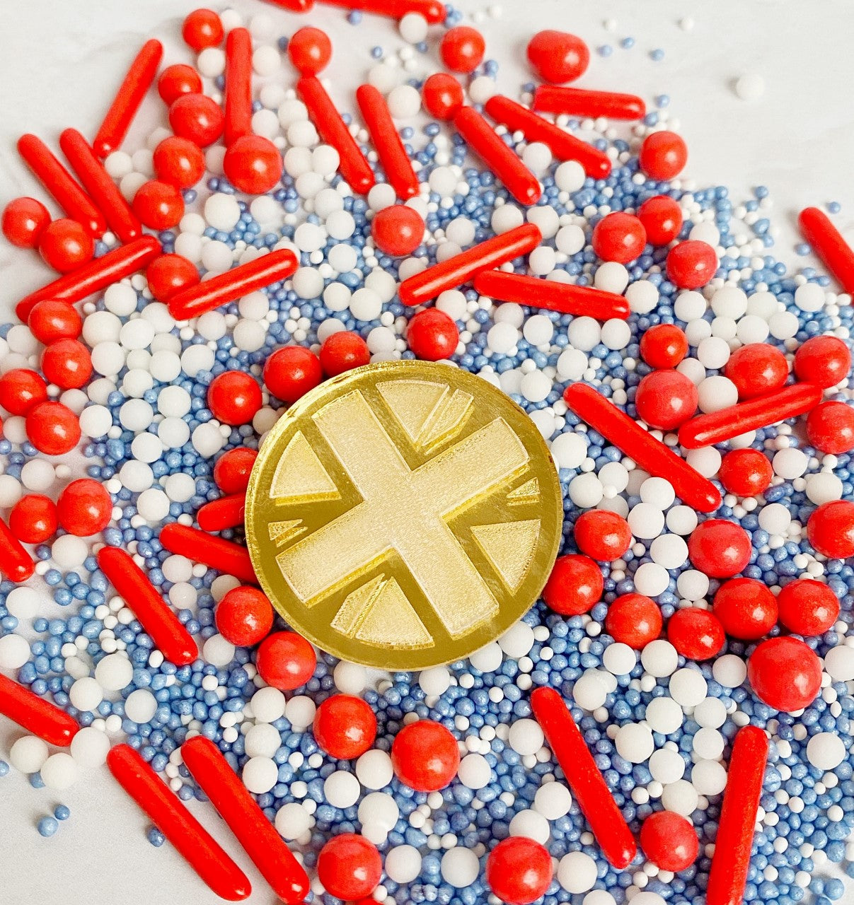 Our Coronation Union Jack Cupcake Disc is here to help you celebrate in style! Built with mirror acrylic, this cupcake disc puts a fun and funky spin on the classic Union Jack. Get ready to party in fit for a king with this show-stopping, eye-catching design!