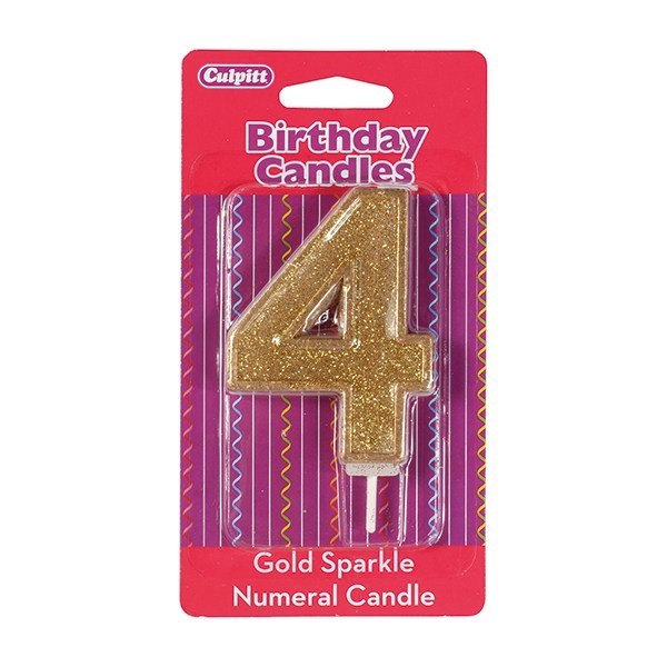 Number 4 Gold Glitter Birthday Candle is backordered and will ship as soon as it is back in stock.