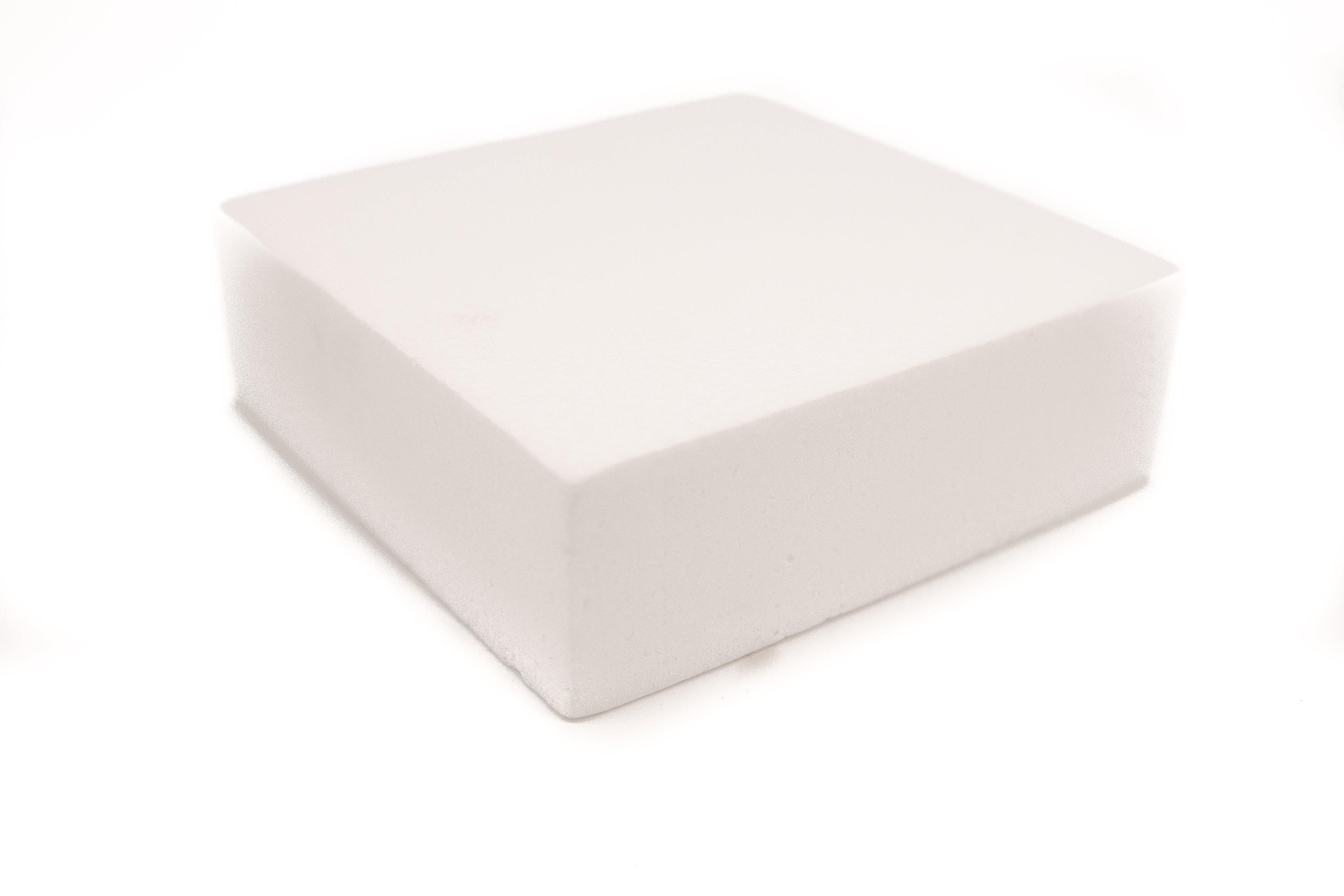 Square Straight Edged Polystyrene Cake Dummy. This deep, solid white styrofoam cake dummy has a straight edge to make it easier to cover with Royal icing. This handy dummy can be used to practice your cake decorating, for a model cake or as cake separators. If being used to separate cakes it is advised to wrap the dummy in cling film.