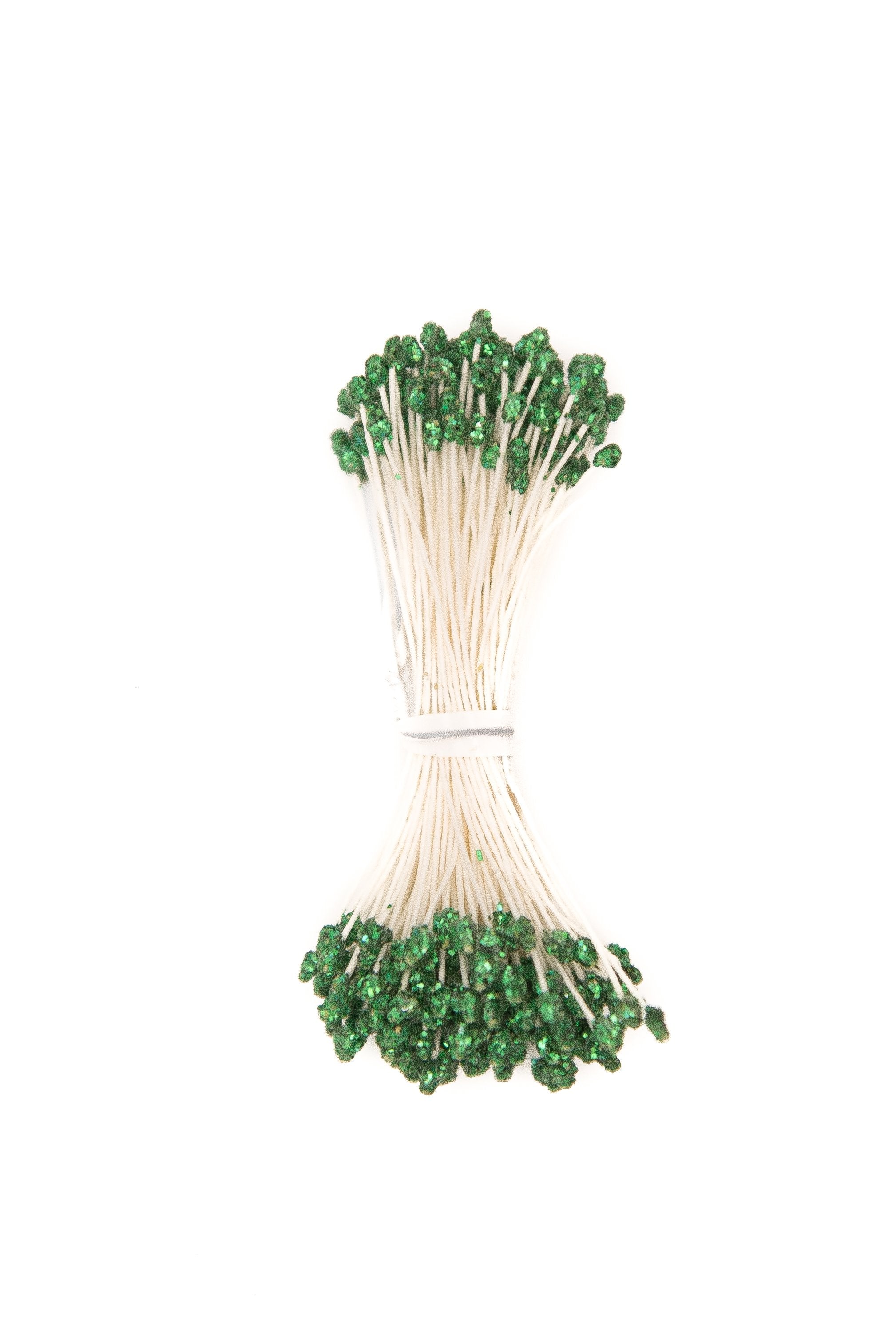This double ended Green Stamen is packed in bunches of 50 (which includes 100 beaded Stamen heads).